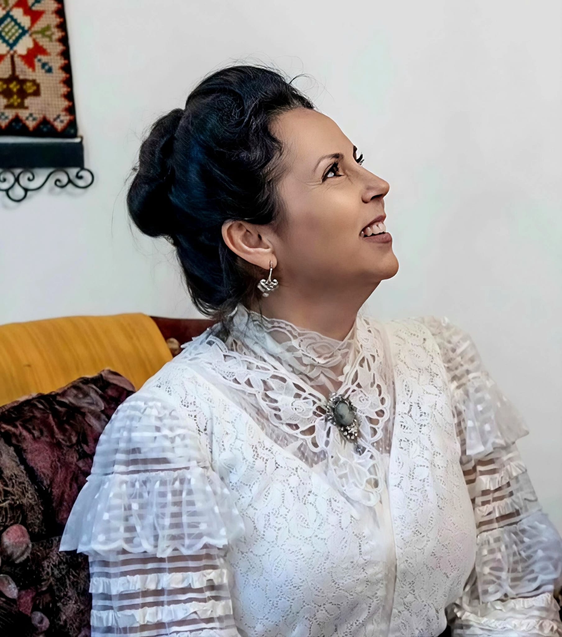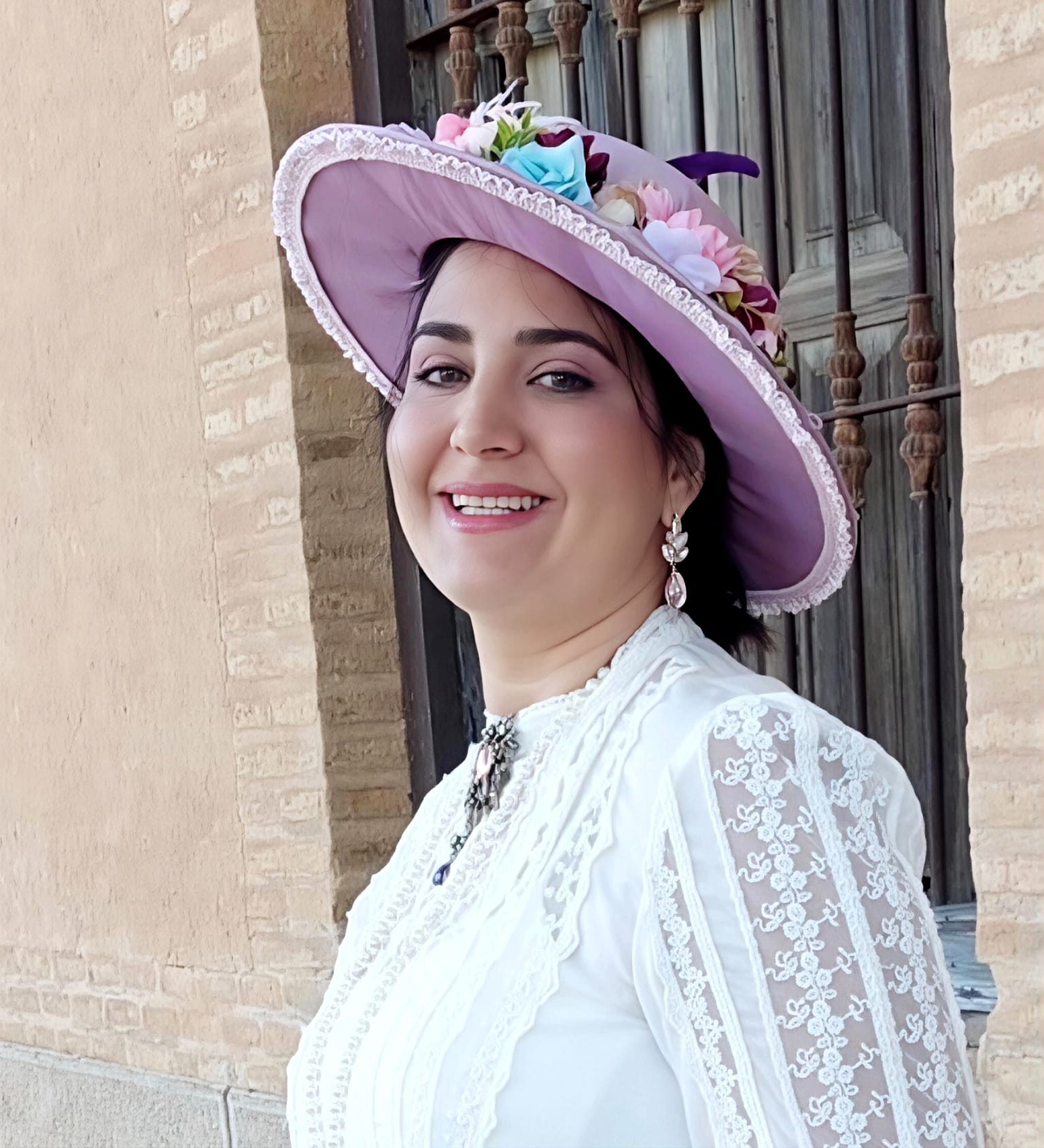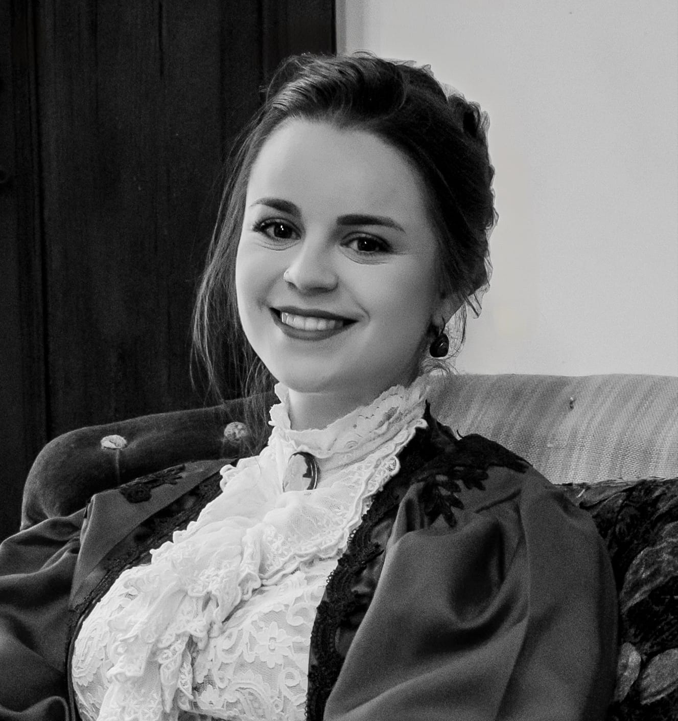 Nacida en Cartagena, aficionada a la historia y a la moda, con especial interés en la época modernista y su contexto social y cultural. Su trayectoria en la recreación histórica comenzó hace tres años, cuando empezó a formar parte de una asociación dedicada a la divulgación del Modernismo. Tras esa primera etapa de aprendizaje y experiencia compartida, decidió continuar su camino de manera independiente, desarrollando una mirada más personal y libre sobre la recreación histórica.