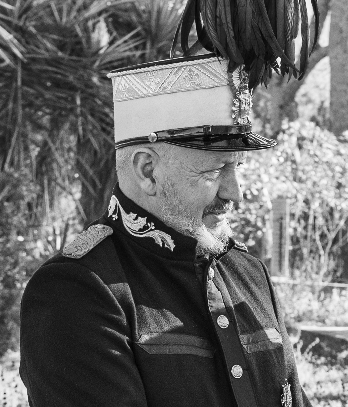 Representando a Excmo. Sr. D. Francisco Pedro Gómez Jordana, nacido en Mazarrón en 1952, en su etapa como Coronel de Infantería, noble caballero condecorado con la Gran Cruz y Placa de la Real y Militar Orden de San Hermenegildo y caballero de la Real Militar Orden de San Fernando con 5 cruces de 1a clase. Ascendido a teniente general en 1915 fue nombrado alto comisionado de España en Marruecos antes de su fallecimiento en 1918. Cuñado del Sr. D. José María Bernabé Bonmatí y miembro de la Casa de S. M. El Rey Alfonso XIII.